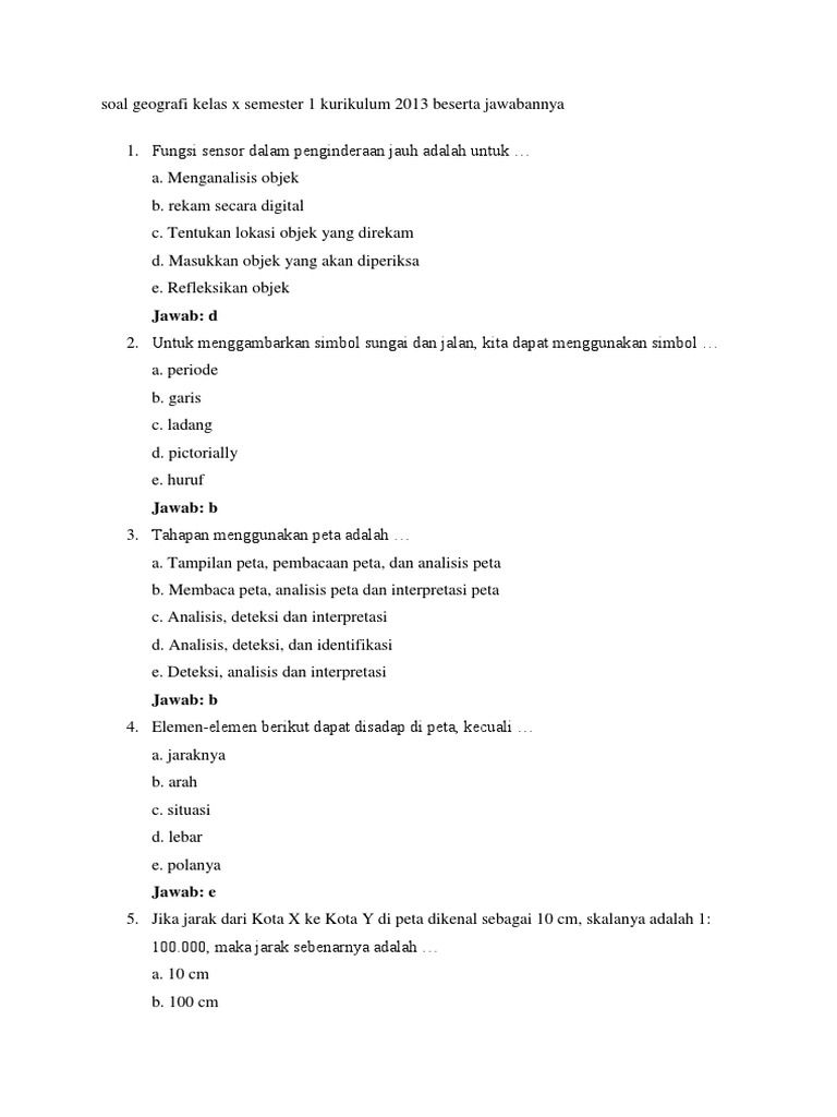 Contoh soal pilihan ganda geografi kelas x semester genap tentang peta : Contoh soal pilihan ganda geografi kelas x semester genap tentang peta : Soal uts geografi kelas x. Contoh soal pilihan ganda geografi kelas x semester genap tentang peta : Feb 11, 2019 · keterangan soal :